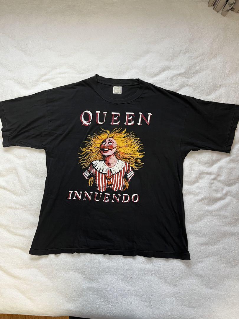 クイーンの「イニュエンドウ」の当時のTシャツになります。QueenのInnuendoというアルバムは、フレディ・マーキュリーが生前最後に作ったラストアルバムです。サイズはXLです。色はブラック(黒色)です。デッドストックから2回ほど洗濯したのみで、とても綺麗な状態です。(ドライロットでもございません。)よろしくお願いします。